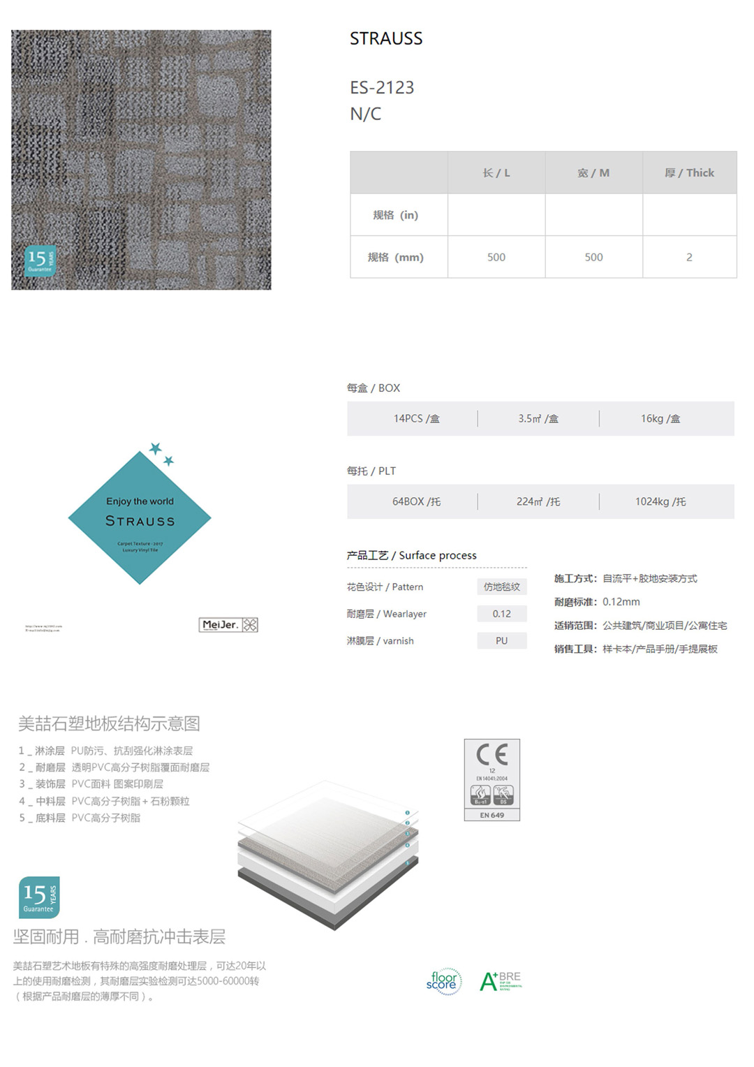 美喆石塑地板地毯纹ES2123环保耐磨防水地板家用商用
